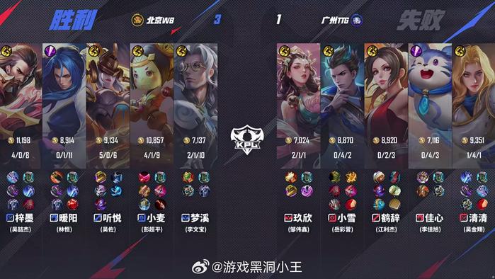恭喜WB第四小局再拿一分,目前比分WB 3:1 TTG先到赛点