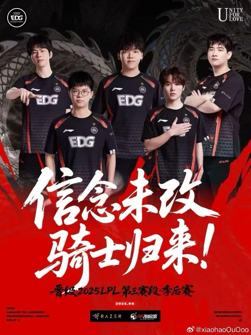 虎扑08月31日讯 EDG战胜WE挺进季后赛,Xiaohao赛后发文: