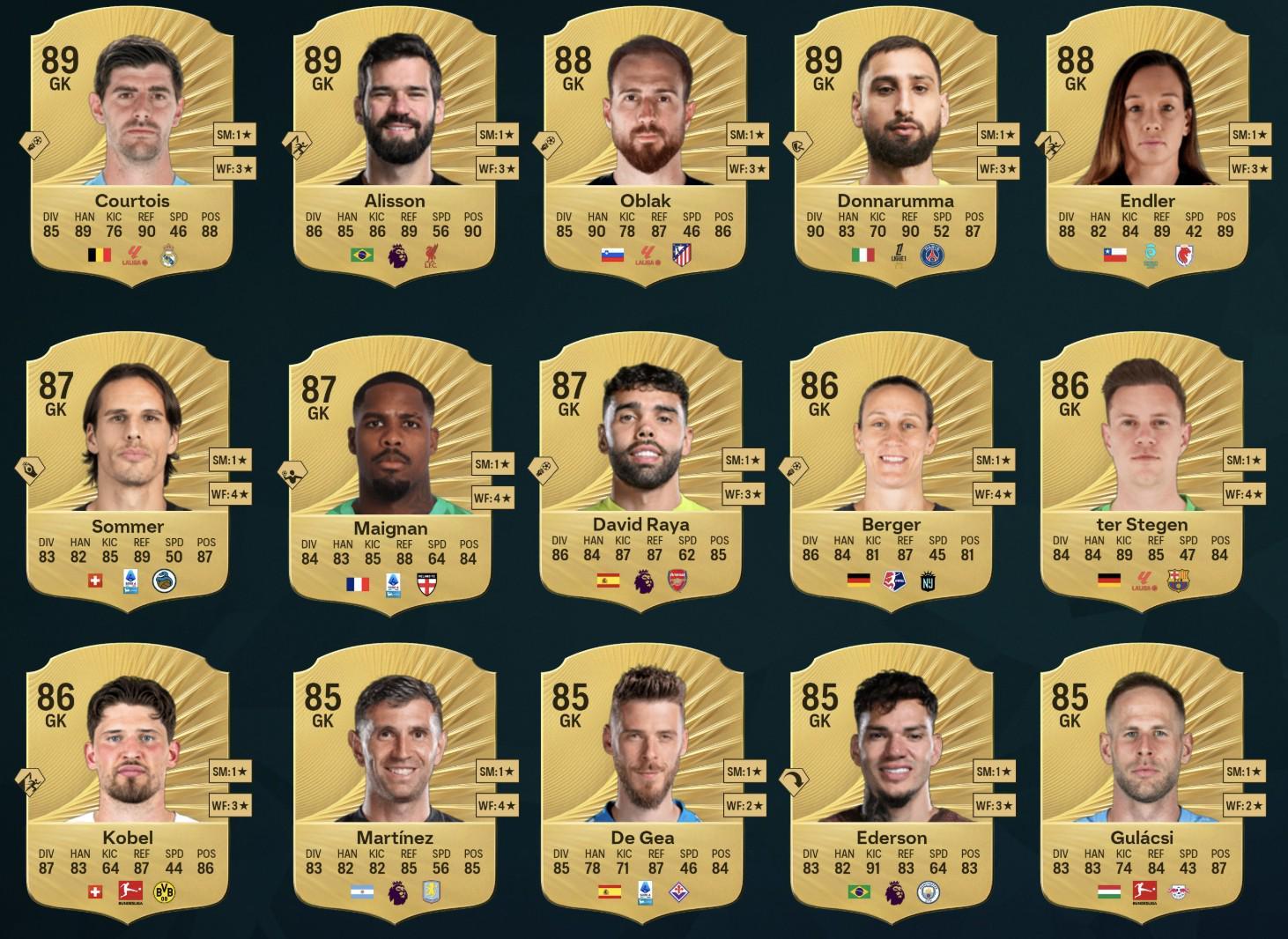 《FC26》中的门将前15已经遭到曝光,其中,库尔图瓦、阿利松、多纳鲁马并列第一。